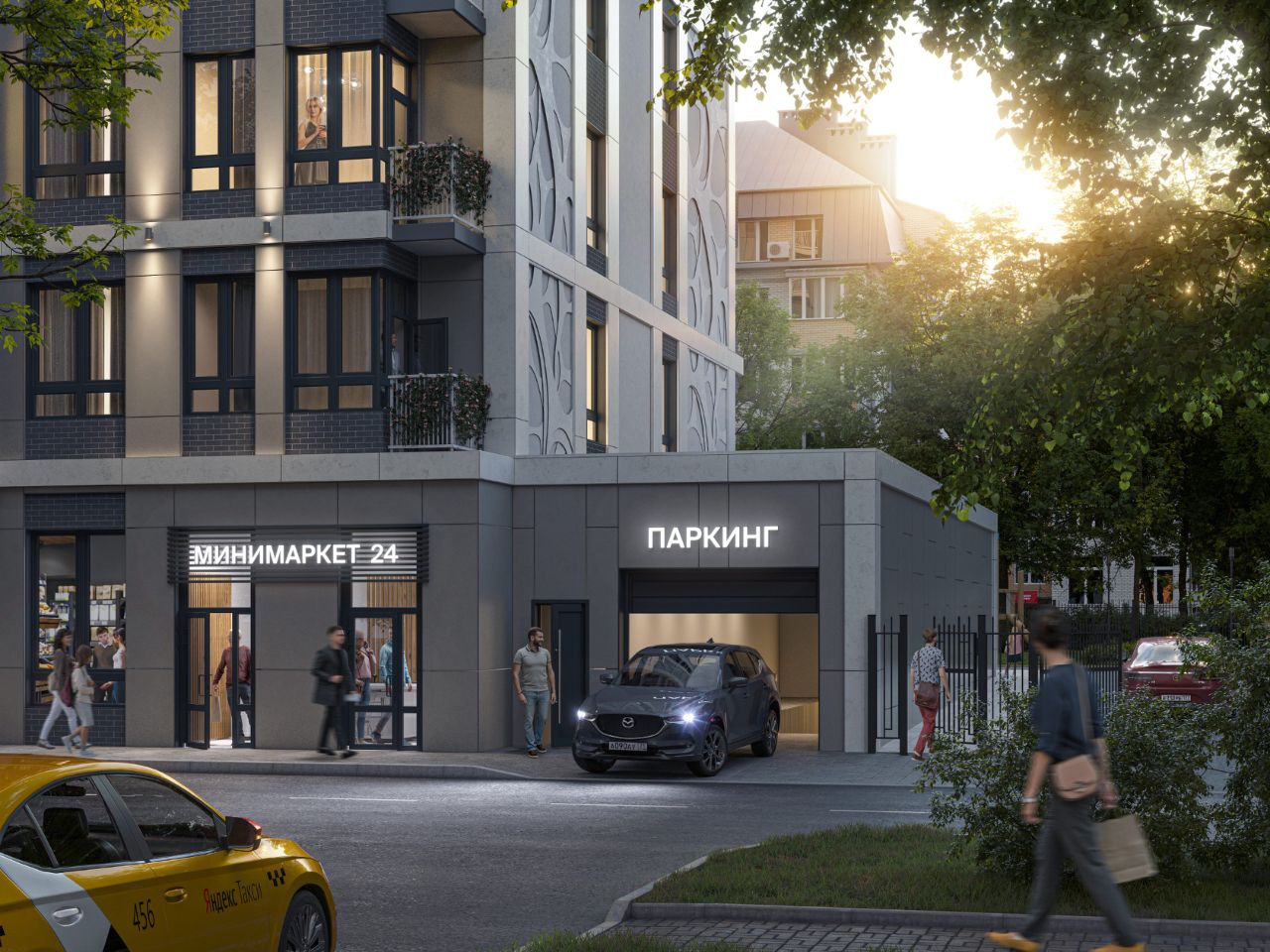А рядом с комплексом находятся: сетевые магазины, университеты, школа, поликлиника и детские сады — полностью сформированная инфраструктура.